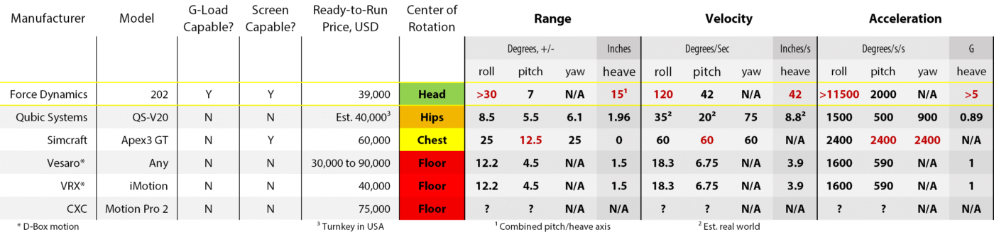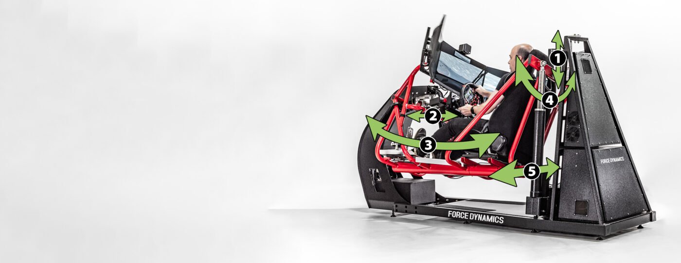 It’s the only true motion simulator in its price and size class, the only one capable of moving displays with the platform, the only one providing true g-force loads, and the only two-actuator system with effective surge and sway axes that outperform pro-level 6DOF systems.