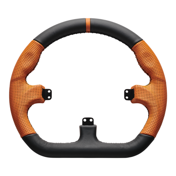 With orange-colored grips and a center indicator, it makes for a stylish addition to your steering wheel collection.