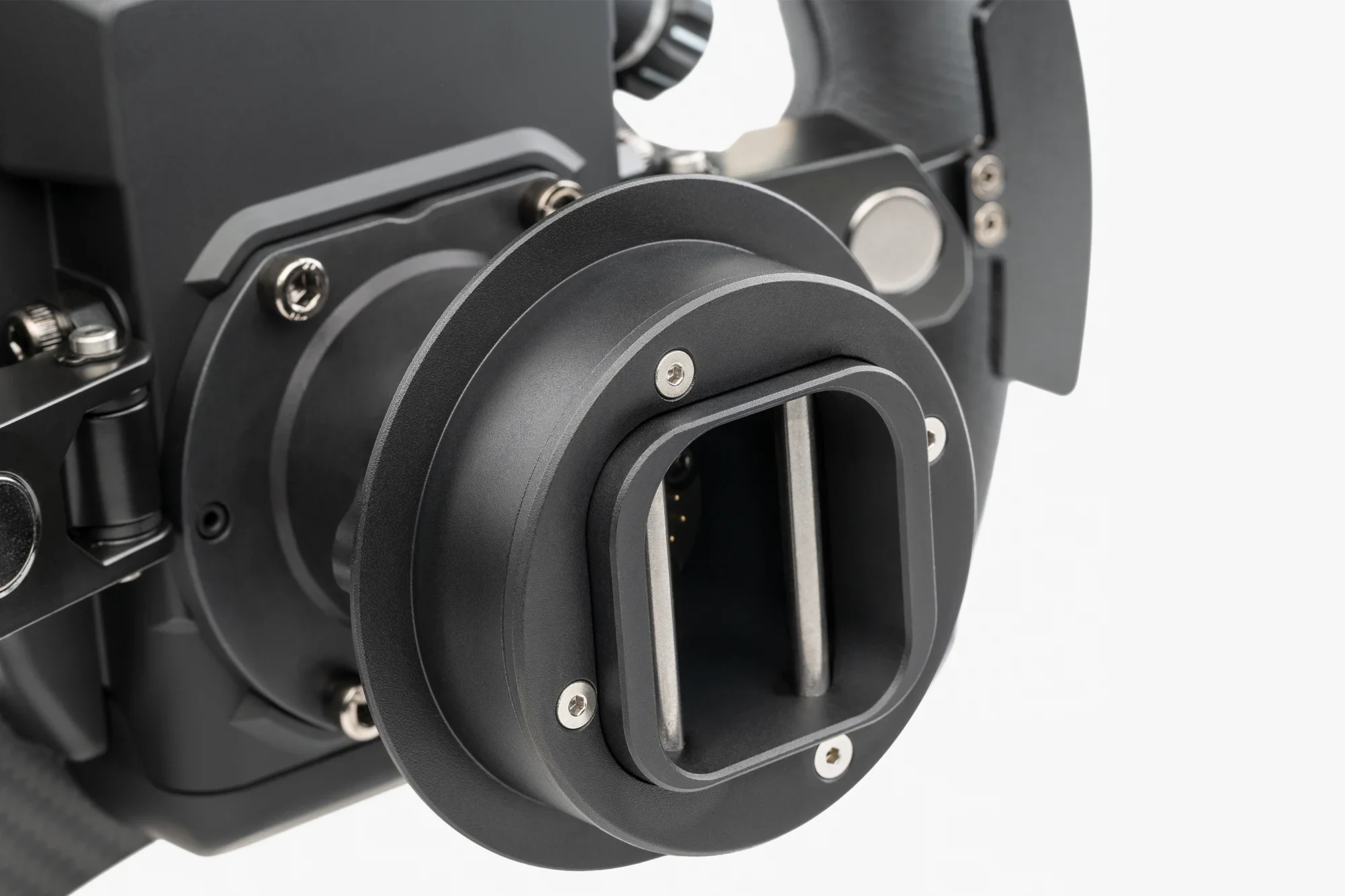 - Slip ring system (life-tested for thousands of hours) provides cable-free delivery of power and data between Steering Wheel and Wheel Base without the need for a mechanical limiter (allows for high steering angle settings)