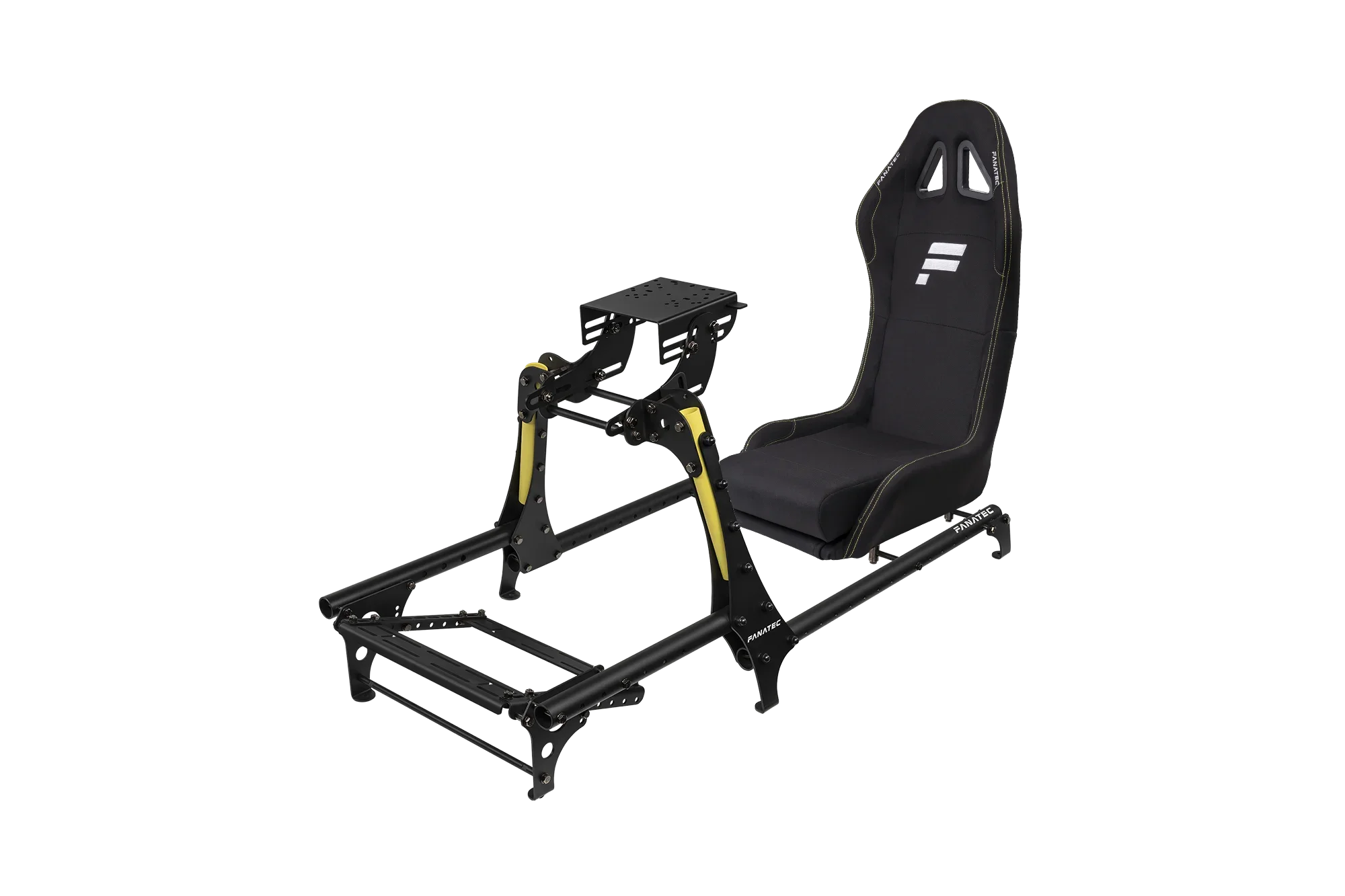 The frame is made of aluminium tubing and steel brackets, with easy-to-follow instructions to assemble with the included tools. The optional Base plate (included) is pre-drilled for bottom mounting of many third-party bases and legacy Fanatec bases.