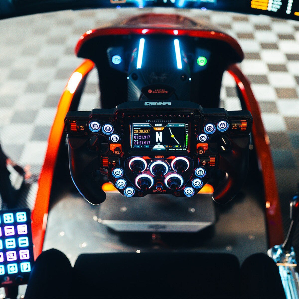 • IMSIM GARRA Fiber Glass Chassis (Various Colors Available) • Bimarco Dynamic Racing Seat with Speakers in Headrest • Asetek Invicta 27nm Wheelbase • GSI Hyper P1 Wheel • IMSIM Talento 3 Race Pedal Set • BDH H1SQ Shifter • Heusinkveld E-Brake • Single 45″ Wide Screen or Optional Triple Screen • Custom Gaming PC with RTX 50 series (VR Ready) • Precision Sim Engineering Pro Switch Panel w Mount • Logitech 5.1 Z906 Sound System • Corsair Wireless Gaming Headset • Headset Hook • Wireless Keyboard / Mouse • PC Shelf Kit • Surge Protectors • Full cable management • Headlights • Synced Brake light • Rain Light • 4 Buttkicker Minis (2 on pedals 2 under Seat) • Optional DBox 4 Point Motion System